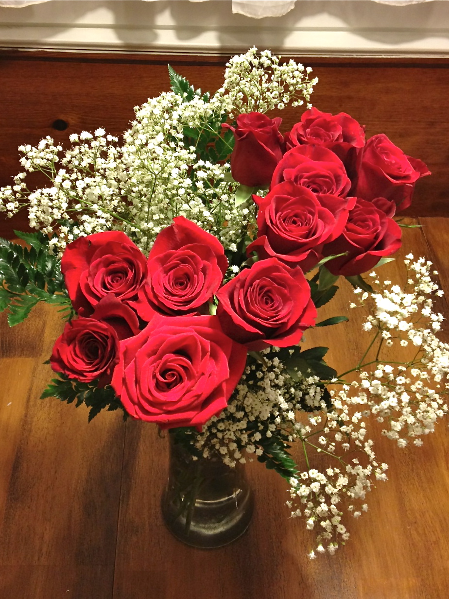 He loved it! In fact, we both loved it so much that we stayed up last night getting our grub on. Soon after, he whipped out an arrangement of fresh roses, a balloon, and a card. He always puts me to shame. I didn’t buy a card for him. ugh