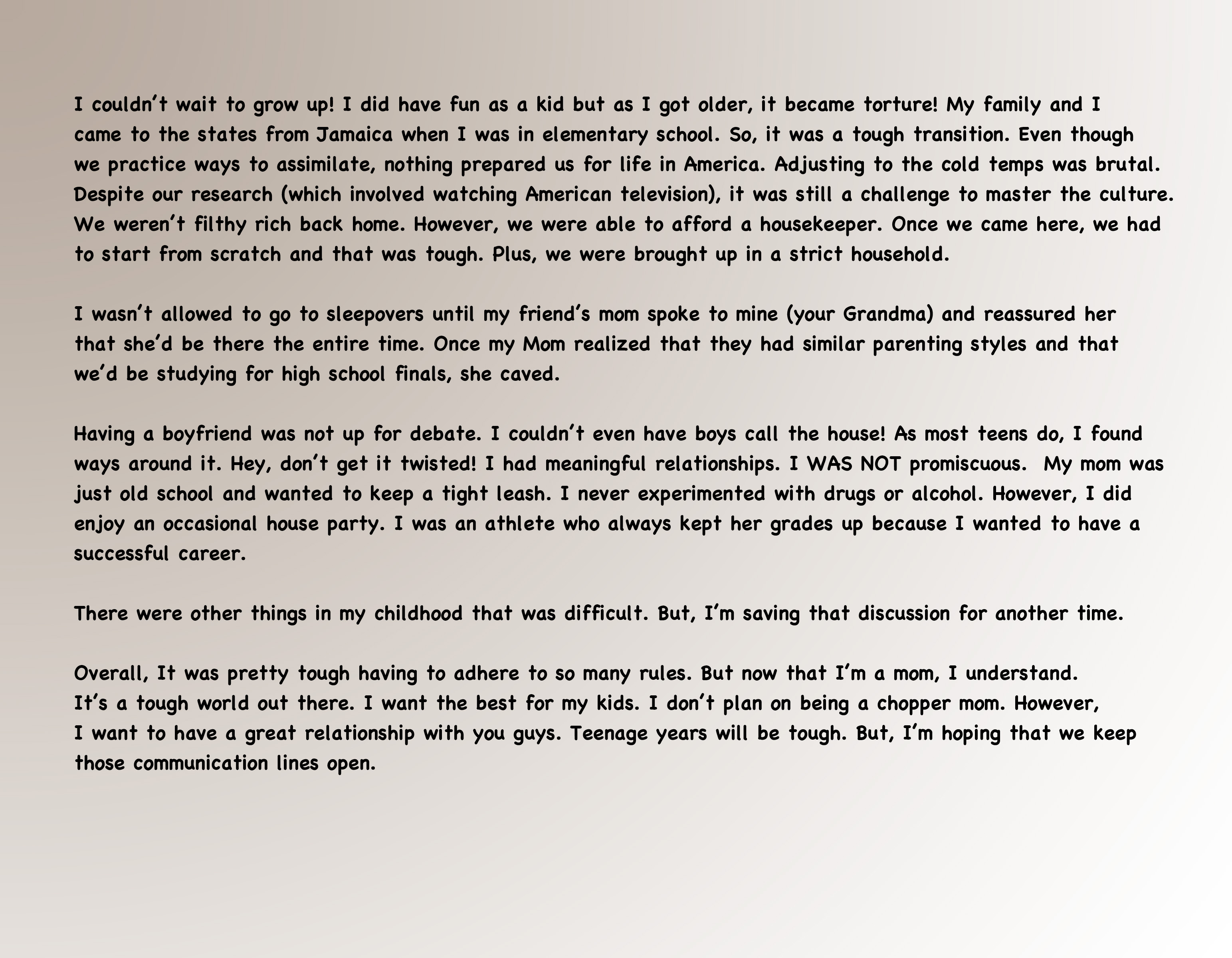 What was the hardest part of growing up for you?